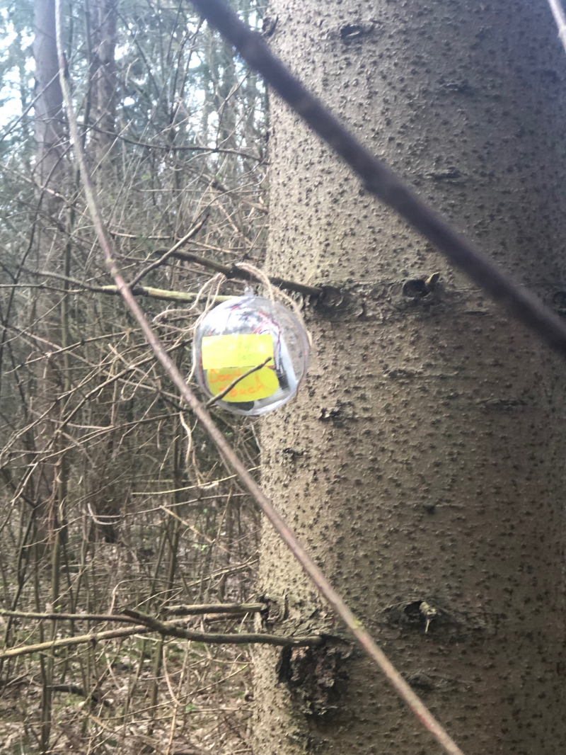dit is een foto van ons apparaat in een boom, hierna hebben we het voor ongeveer 3 dagen laten hangen om de luchtvochtigheid en temperatuur te meten.